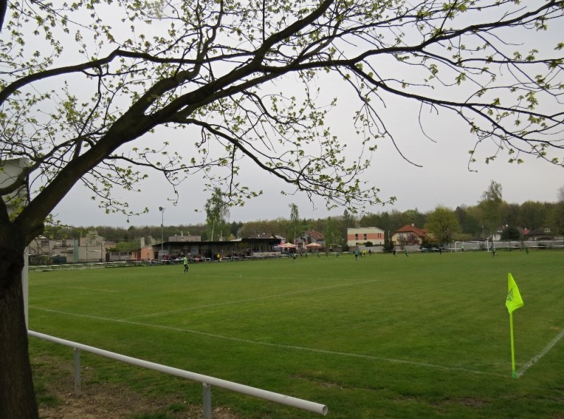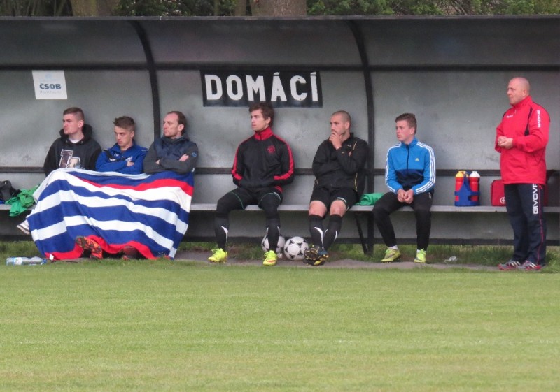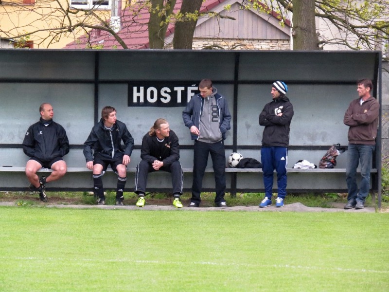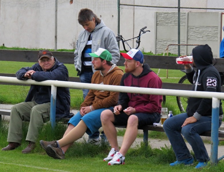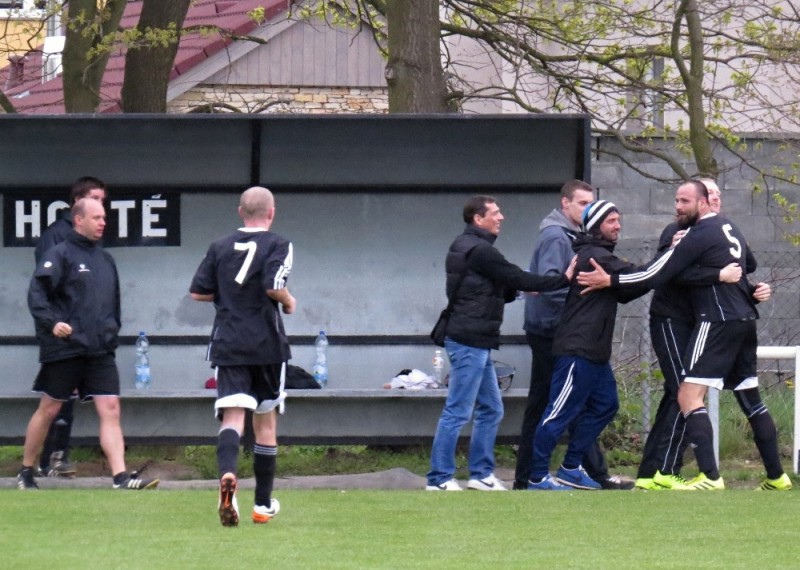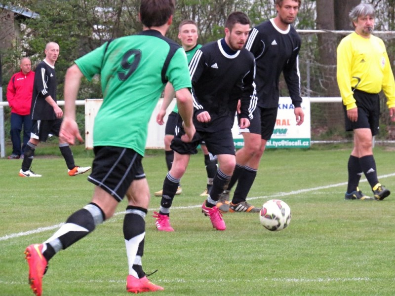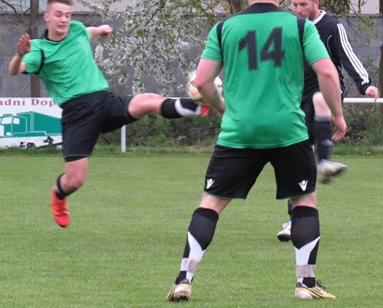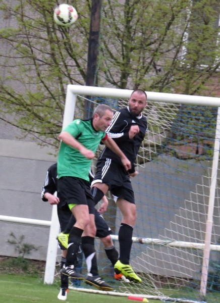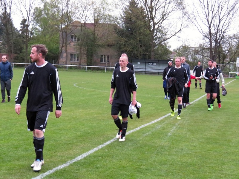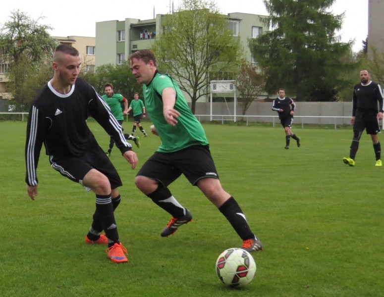 Dalším soupeřem byl další tým z popředí tabulky, který trénuje náš bývalý trenér Jirka Tesař.  Domací se snažili od začátku převzít otěžě zápasu, nicméně naše defensiva fungovala dobře a domacího brankáře jsem udržovali v bdělosti rychlými protiútoky. V 20. minutě se mohli ujmout vedení domácí, hlavičkovali však po centru z levé strany vedle. V 25. minutě se dostal do nadějné pozici i náš tým a L. Johanides mířil do nohou domácího brankáře. V 28. minutě další hlavičkový příležitost domácích vedle. V 42. minutě byl faulován M. Absolon, trestný kop poslal do vápna M. Pekárek a nejdříve byl u míče O. Mikuláš, který hlavou 0:1.  V nastavení prvního poločasu domací podnikli další rychlou akci a po centru z pravé strany byl na zadní tyči nejdříve jejich útočník, který srovnal na poločasových 1:1.