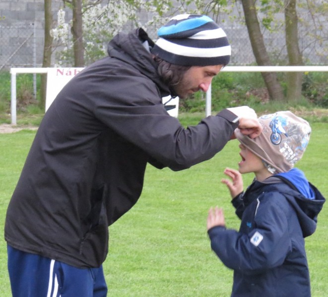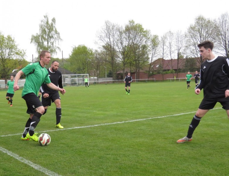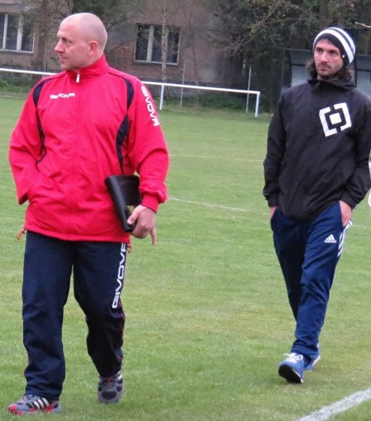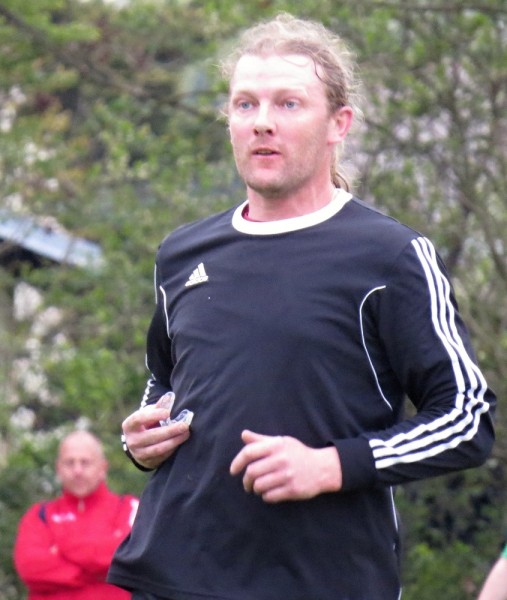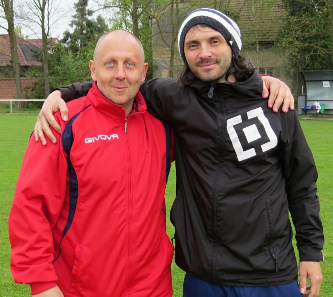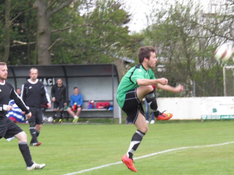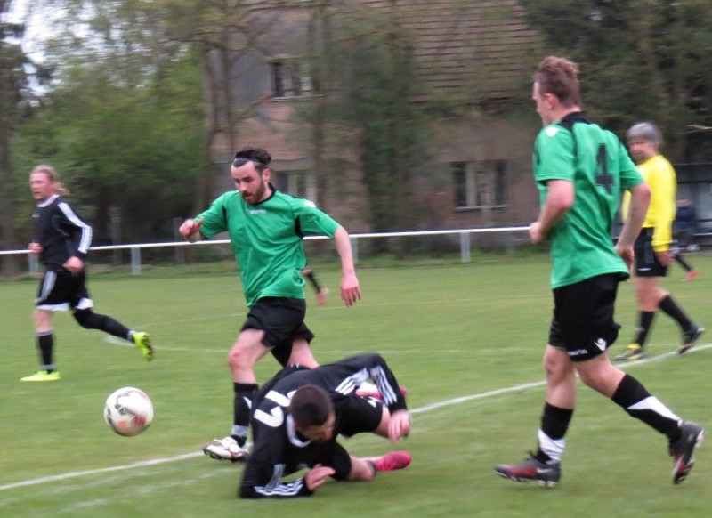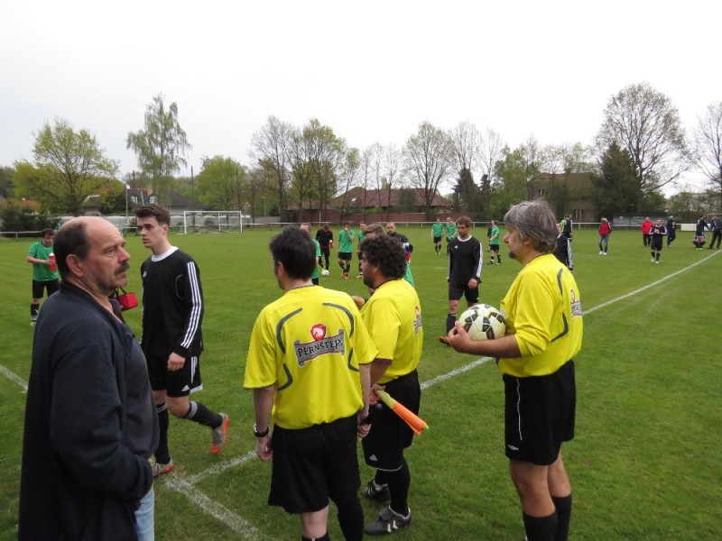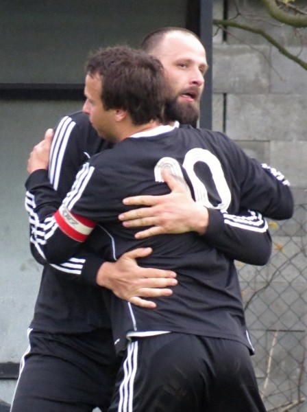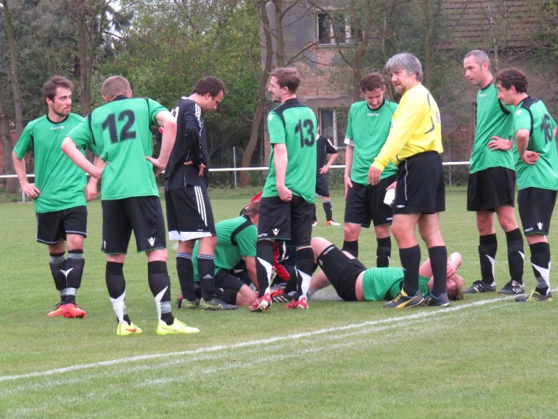 Dalším soupeřem byl další tým z popředí tabulky, který trénuje náš bývalý trenér Jirka Tesař.  Domací se snažili od začátku převzít otěžě zápasu, nicméně naše defensiva fungovala dobře a domacího brankáře jsem udržovali v bdělosti rychlými protiútoky. V 20. minutě se mohli ujmout vedení domácí, hlavičkovali však po centru z levé strany vedle. V 25. minutě se dostal do nadějné pozici i náš tým a L. Johanides mířil do nohou domácího brankáře. V 28. minutě další hlavičkový příležitost domácích vedle. V 42. minutě byl faulován M. Absolon, trestný kop poslal do vápna M. Pekárek a nejdříve byl u míče O. Mikuláš, který hlavou 0:1.  V nastavení prvního poločasu domací podnikli další rychlou akci a po centru z pravé strany byl na zadní tyči nejdříve jejich útočník, který srovnal na poločasových 1:1.