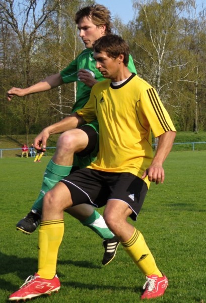 První špatná zpráva přišla pro náš tým hned při rozvičování, kdy se ozvalo zranění D. Šišánovi a těsně před zápasem se musela udělat změna v sestavě (od první minuty nastoupil L. Johanides). Zápas jsme začali "ospale" a náš soupeř byl od první minuty lepším týmem. V 16. minutě zbytečně fauloval T. Madák (po Xté ztátě míče), domácí rozehráli přímý kop na zadní tyč, kde jejich hráč vratíl před branku a další neuhlídáný domácí borec neměl problém 1:0. Od této doby se náš tým zlepšíl a pomalu začínal přebírat otěže zápasu. V 43. minutě si domácí brankář špatně postavil zeď a M. Absolon obstřelem přesně k tyči 1:1.