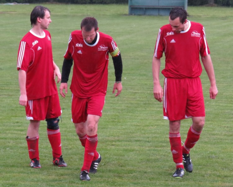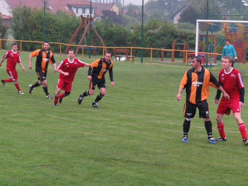 Vzhledem na stav počasí to vypadalo, že se zápas neodehraje, ale domácí hráči to chtěli odehrát, proto jsme nastoupili v této slepované sestavě. Bohužel někteří hráči se omluvili. Od začátku zápasu jsme hráli po zemi, točili jsme hru a měli některé šance. Soupeř ohrožoval naši branku z trestných kopů, které vznikaly ze zbytečných faulů postranních čar. Ve dvacáté minutě náš gólman vyrazil balon, bohužel úmysl ho po druhé chytit mu nevyšel, protože útočník domácích ho fauloval zákrokem do hlavy a od té doby byl náš gólman otřesen a vyžadoval si střídání z důvodu bolesti hlavy. K tomuto střídání muselo dojít až o poločase, kdy ho vystřídal Tomáš Bareš. Tím pádem jsme hráli o deseti. Soupeř nevyužil své přesily a hrál všechno odzadu. Při jedné této rozehrávce se balónu zmocnil Pepa Prokeš a z dvaceti metrů zavěsil míč do brány.