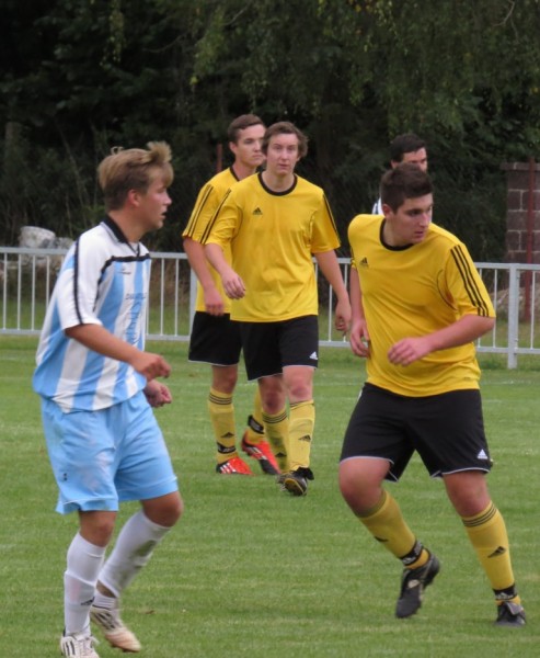 Vzhledem k velkému počtu omluvenek (5) musel náš tým nastoupit v hodně pozměněné a omlazené sestavě, což bylo v kontextu celého zápasu rozhodující. V páte minutě udělal nevídanou hrubku J. Roček (dostal jesle z 20ti metrů) a domácí útočník upaloval sám na Baldu, jemuž udělal kličku, ale prázdnou branku netrefil. V 8. minutě další rychlý kontr domácí, Balda stačil vyrazit na roh. V 22. minutě zahrozil i náš tým, to když M. Absolon sklepl míč na L. Míleho, jeho střela skončila bohužel nad. V 27. minutě krásná kombinační akce našeho mládí a domácí brankář vyrazail střelu Marka Šándora na roh. Po rohu se dostal k hlavičce osamocený L. Mládek a trefil tyč soupeřovi branky. V 35. minutě další průnik domácího hráče, Balda opět vyrazil na roh. V 36. minutě po rohu faul v našem pokutovém území (držení protihráče museli vidět i lidé z přístávajícího letadla), Balda však penaltu skvěle lapil. Z následného rohu náš tým bohužel již kapituloval, to když neuhlídal náběh domácích hráčů 1:0.