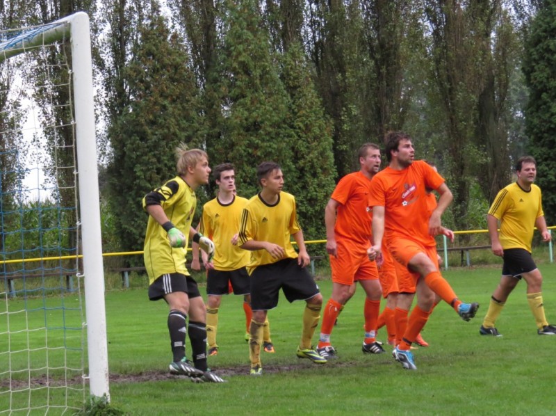 Náš tým nastoupil s odhodláním odčiniti blamáž z minulého týdne, kdy ztratil po individuálních chybách slibné vedení 3:0 v Ředicích a v 19. minutě měl první příležitost ke skórování, to když střela M. Absolona skončila na pravé tyči Jezdinského branky. V 20. minutě hlavičkoval pěkně L. Johanides, brankář hostí opět bez chyby. V 29. centroval z levé strany J. Kučera a jeho "nepovedený" centr zapadl na zadní tyč za bezmocného branaře Bohdanče 1:0. V 42. minutě rozehrál přímý kop P. Zeman a M. Brňák hlavou (zády k brance) těsně nad.
