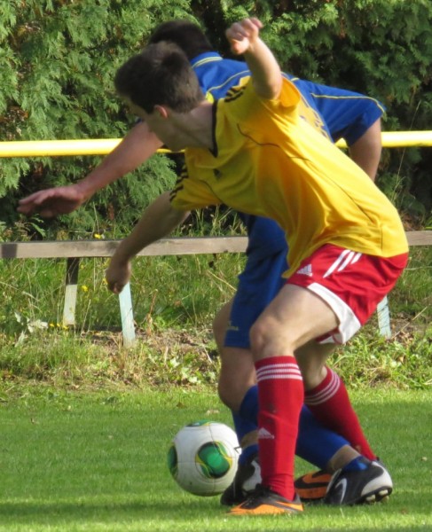 Po neúspěšném minulém kole ve Velinách jsme se rozhodli udělat změnu v rozestavení (nastoupili jsme v rozestavění 3-4-3) již od začátku utkání. Do začátku utkání jsme nakročili s vervou a touhou po vítězství, ze které jsme v pozdější době dokázali vytěžit i branky. Do šancí jsme se dostávali zejména po brejkových příležitostech leč koncovka byla žalostná. Nejblíže brance pak byla dalekonosná střela L. Mládka, která skončila jen na břevně a tyči branky hostů. Po nepřesnosti hostujícího brankáře se neujala ani šance L. Johanidese. Naši diváci se přece jen dočkali do konce prvního poločasu, to když se J. Dušek dostal po nepřesnosti hostujících obránců k odraženému míči a ten uklidil přízemní střelou k levé tyči. Diváci se do poločasu mohli radovat i po druhé, ale (pro mě) z nepochopitelných důvodů rozhodčí Šebetka nepískl v 45. minutě faul hostující brankaře v pokutovém území na J. Duška.