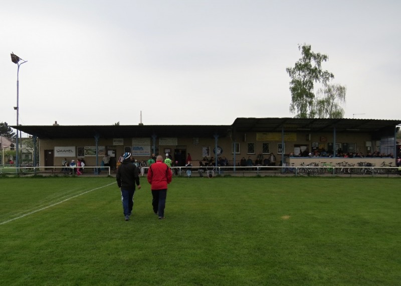 Dalším soupeřem byl další tým z popředí tabulky, který trénuje náš bývalý trenér Jirka Tesař. Domací se snažili od začátku převzít otěžě zápasu, nicméně naše defensiva fungovala dobře a domacího brankáře jsem udržovali v bdělosti rychlými protiútoky. V 20. minutě se mohli ujmout vedení domácí, hlavičkovali však po centru z levé strany vedle. V 25. minutě se dostal do nadějné pozici i náš tým a L. Johanides mířil do nohou domácího brankáře. V 28. minutě další hlavičkový příležitost domácích vedle. V 42. minutě byl faulován M. Absolon, trestný kop poslal do vápna M. Pekárek a nejdříve byl u míče O. Mikuláš, který hlavou 0:1. V nastavení prvního poločasu domací podnikli další rychlou akci a po centru z pravé strany byl na zadní tyči nejdříve jejich útočník, který srovnal na poločasových 1:1.