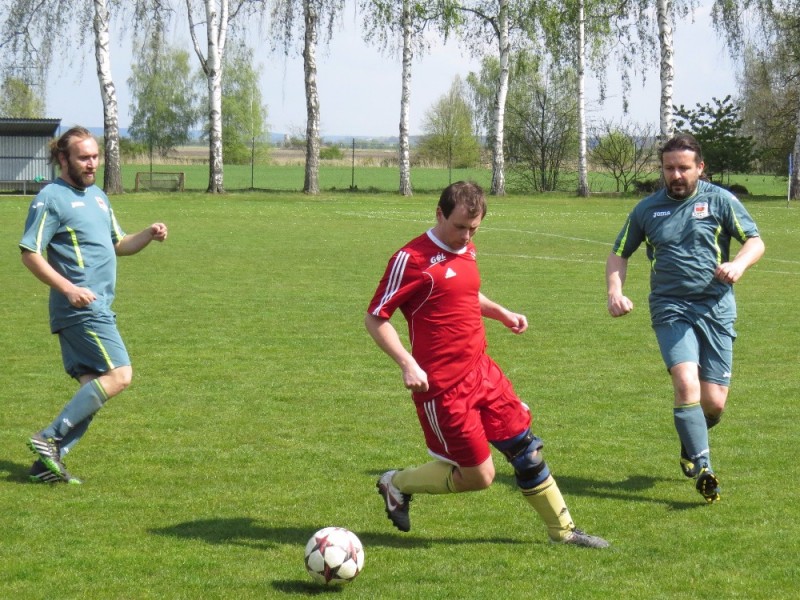 Další zápas našeho Béčka opět vyšel ve stejném termínu jako zápas A mužstva. Těžce skládaná sestava jela k mančaftu, který může použít i hráče hrající okresní přebor a bylo to znát, sice domácí tvrdili že tam nikdo není, ale nevěřil jsem tomu. Od prvních minut na nás byla vidět nervozita, nesehranost a spousta chyb v přihrávkách a domluvě. Další kámen úrazu bylo to, že se nám již v 9. minutě zranil M. Kašpar a museli jsme improvizovat. Domácí měli šance, ale ty bohu dík skončili vedle nebo je chytil náš brankář Judy, který nastoupil po nápadu trenéra do branky místo Sluky. Judy měl sice pár nejistých zákroků, ale vždy to zvládl. Nejsvětlejší jeho moment přišel asi tak kolem 30 minuty, když nádherně vyběl z branky a exluzivním skluzem zabránil soupeři jít do brejku, to se jen tak nevidí. My jsme měli taky nějaké šance, ale bez úspěchu. První šancí bylo zahrávání trestného kopu za vápnem, ale M. Rojkovič trefil nad. Ve 33. minutě jsme už inkasovali, to když domácí hráč se štěstím vystřelil ránu, která prošla R. Královi mezi nohama a trefil to na přední tyč, brankář spíš čekal střelu na zadní. Naší super šanci na vyrovnání měl M. Nečesaný po centru z pravé strany v podání nestárnoucího J. Prokeše, ale z voleje trefil jen břevno a na dorážku tam už nikdo nebyl. Ještě stojí za zmínku střela M. Sluky, která kupodivu skončila na tyči, i když domácí brankář to „jistil“.
